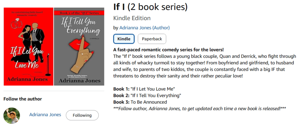 Purchase the E-book or Paperback on Amazon.com and follow me (Adrianna Jones) on Amazon to get updated as soon as Book 3 is released!